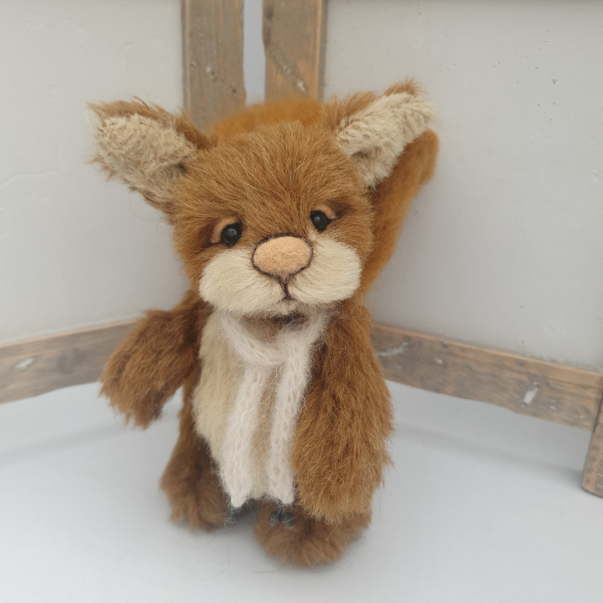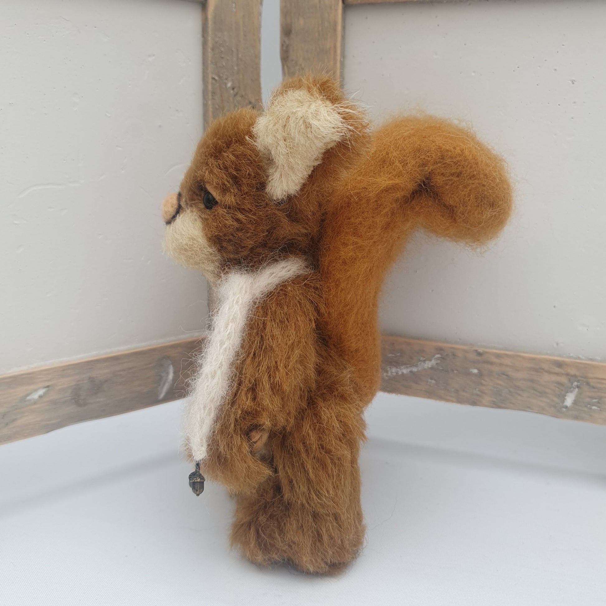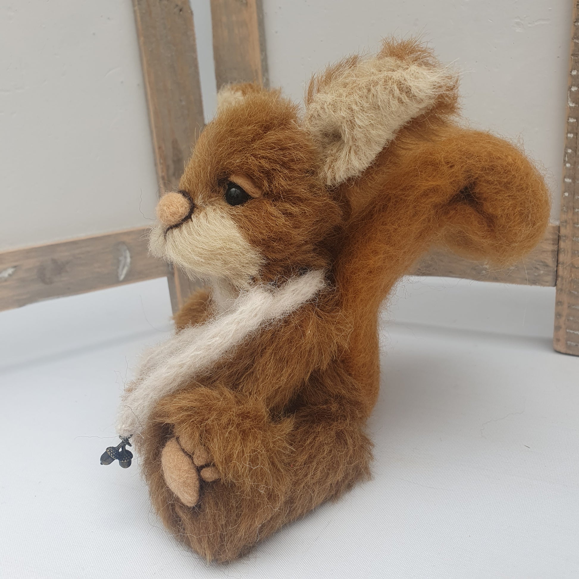 Made from my own original pattern, Mr Squirrel is fully handmade, handsewn, and has been designed by me to be a sitting squirrel, however with a little positioning and support, he is able to stand in an upright position against/beside something as in the images.