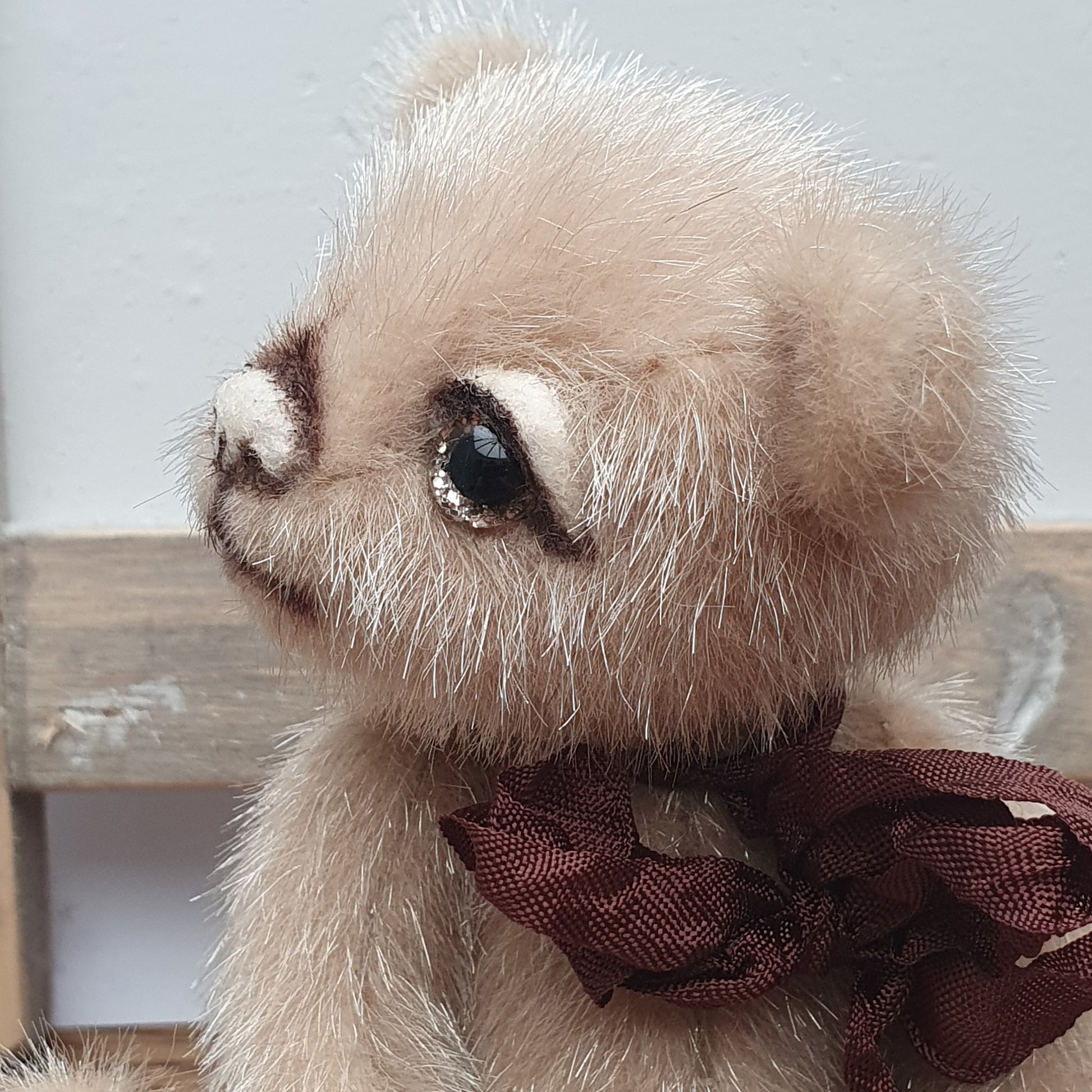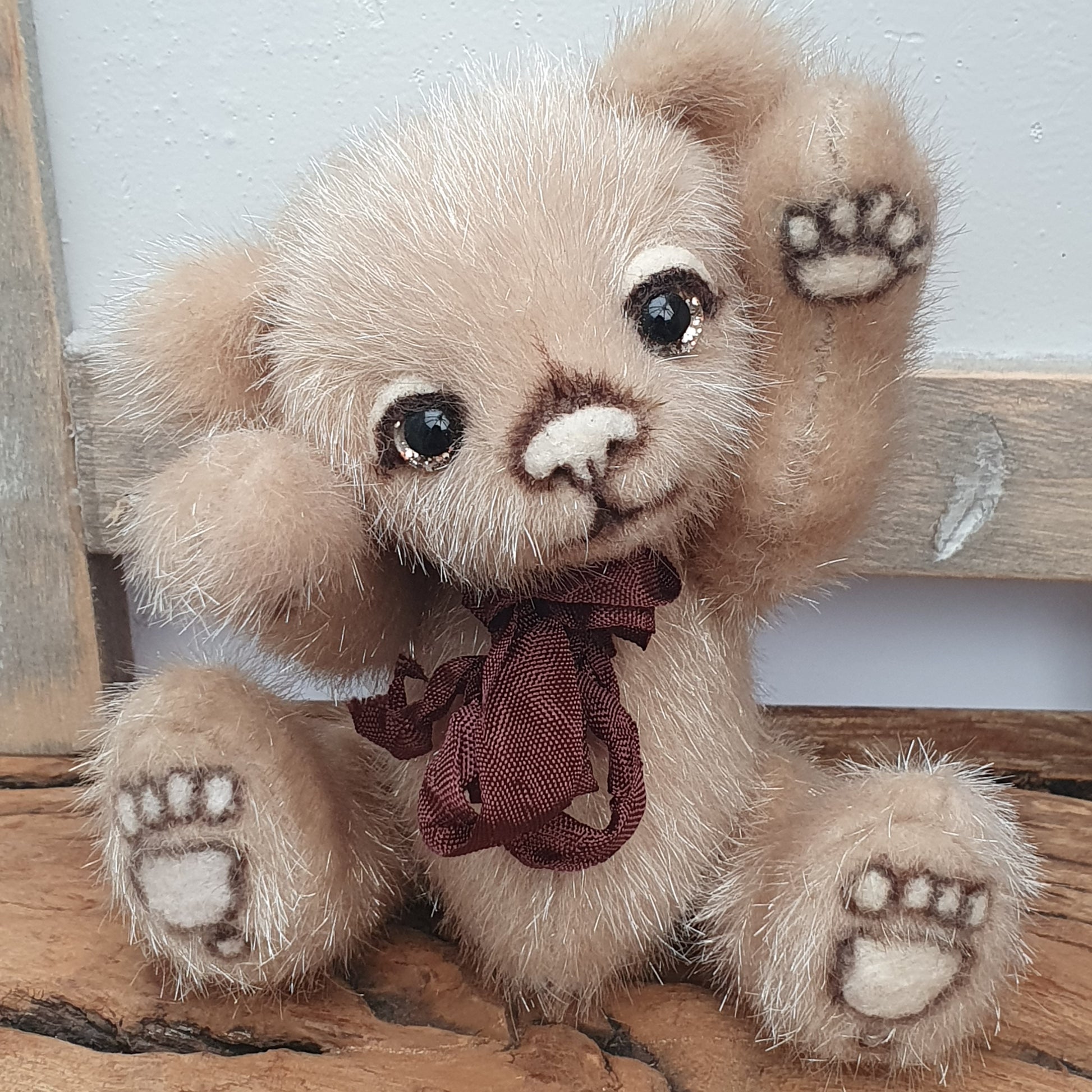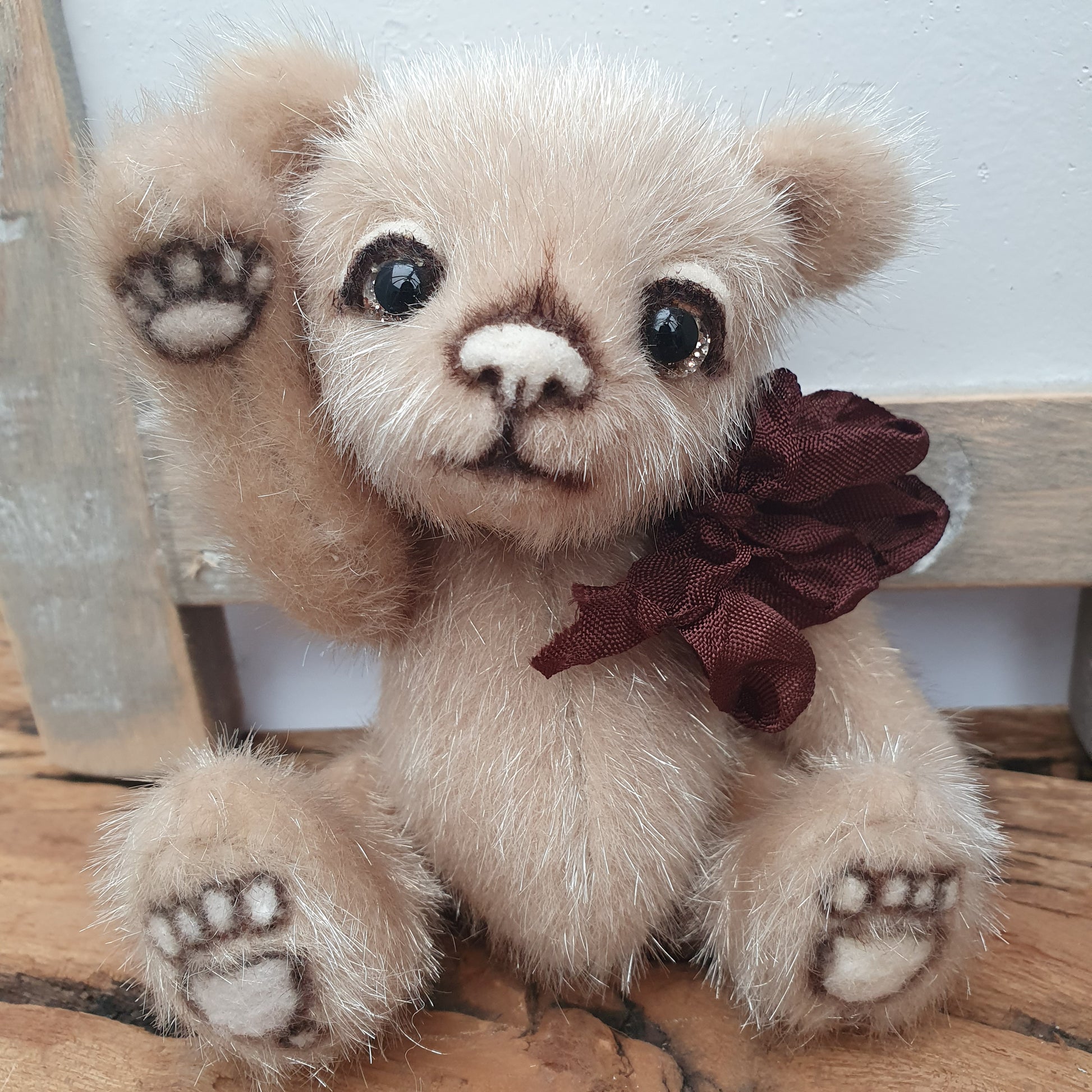 Decorated to his neck with a brown crinkle silk ribbon, which is removable, Winter will come boxed with a swing tag with all her details. And as with all hand made creations will be a one of a kind with no two ever exactly a like.