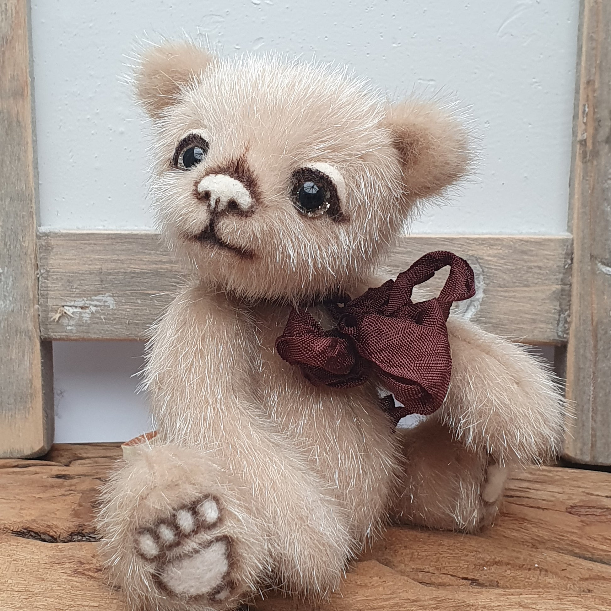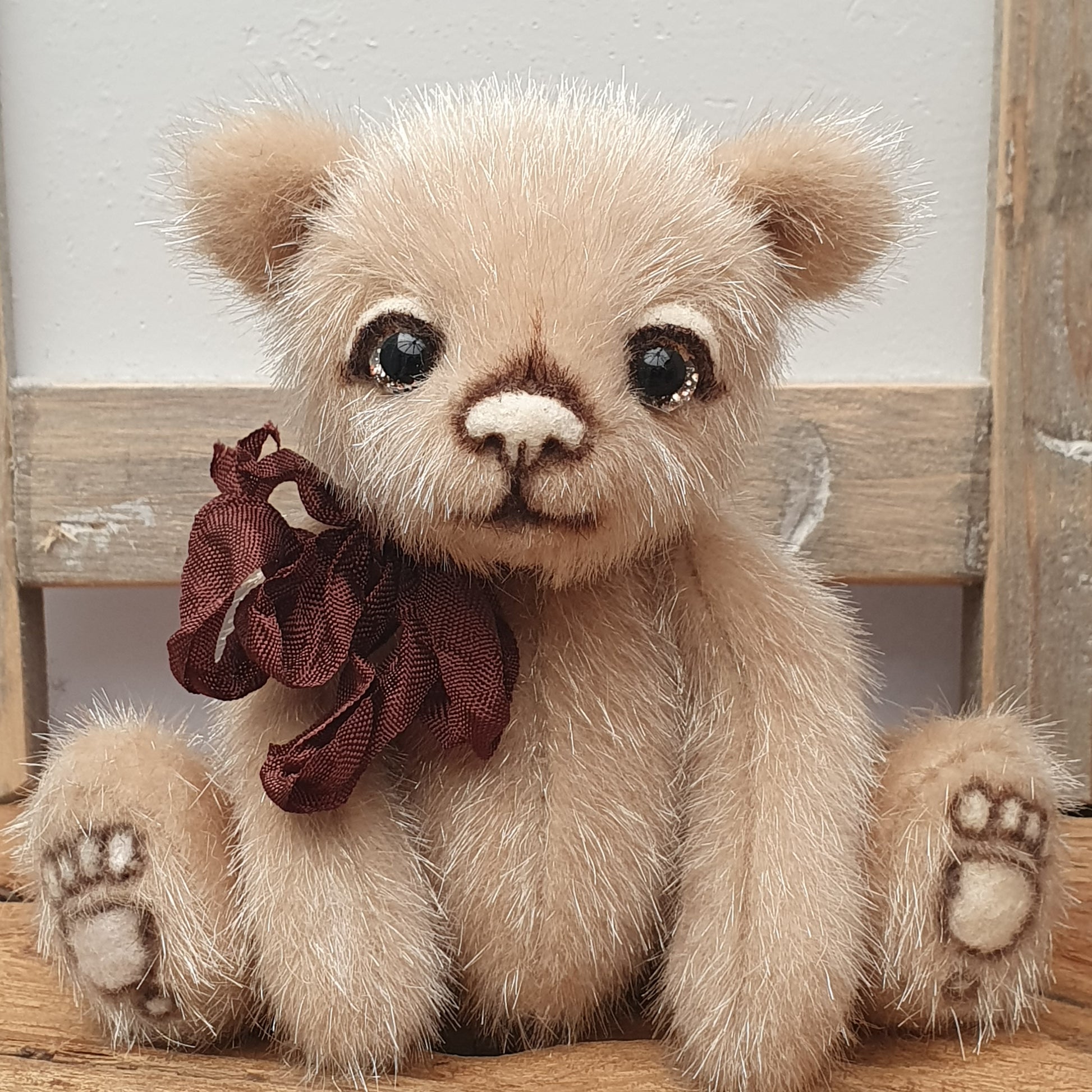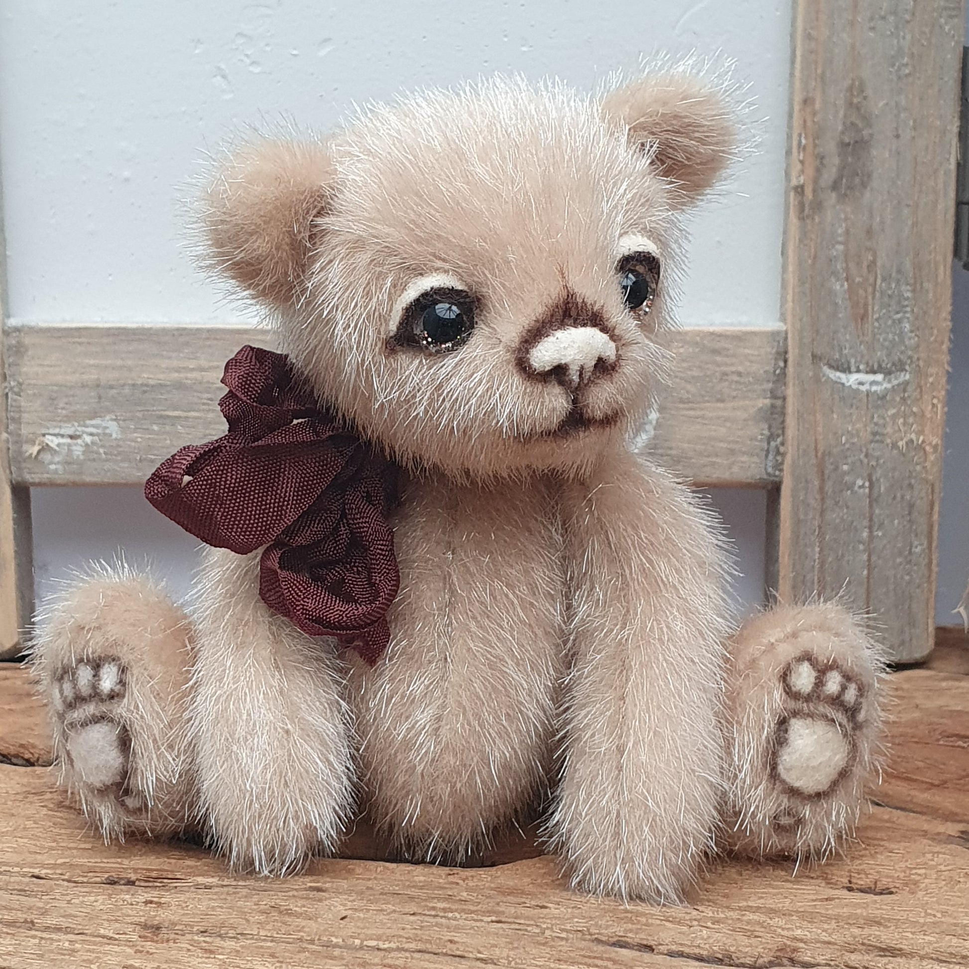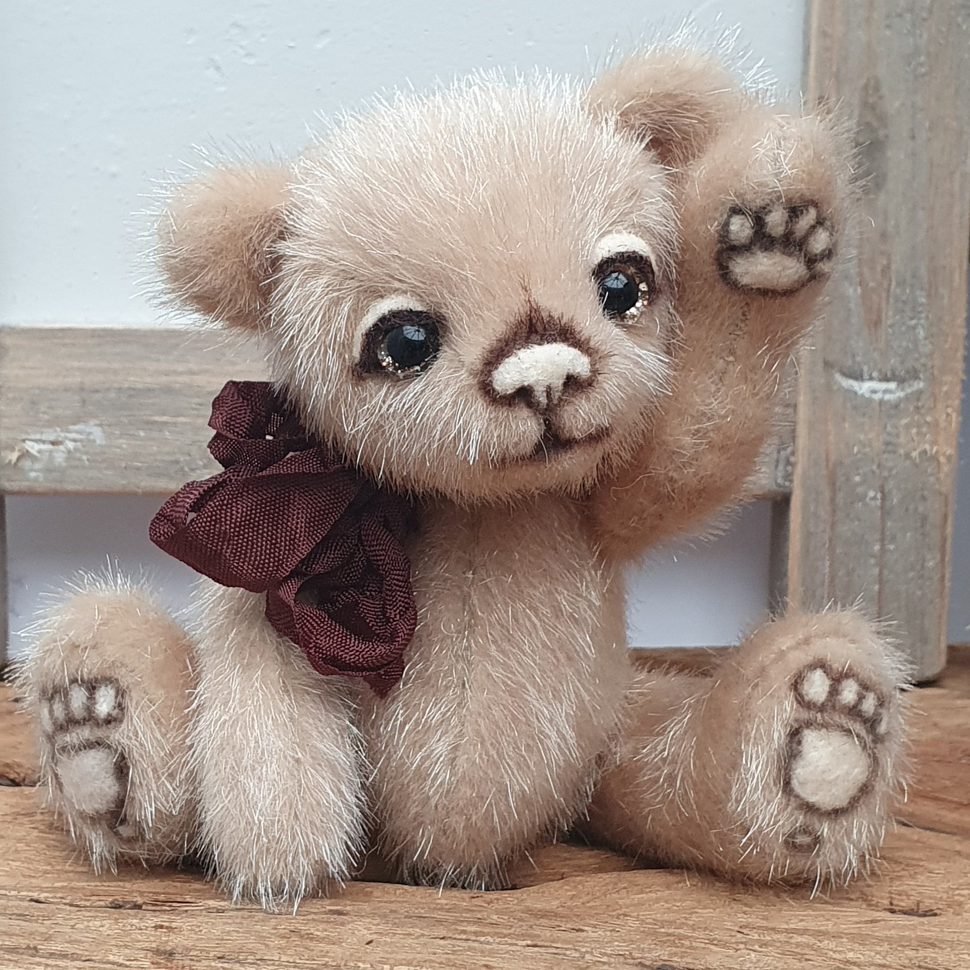 Decorated to his neck with a brown crinkle silk ribbon, which is removable, Winter will come boxed with a swing tag with all her details. And as with all hand made creations will be a one of a kind with no two ever exactly a like.