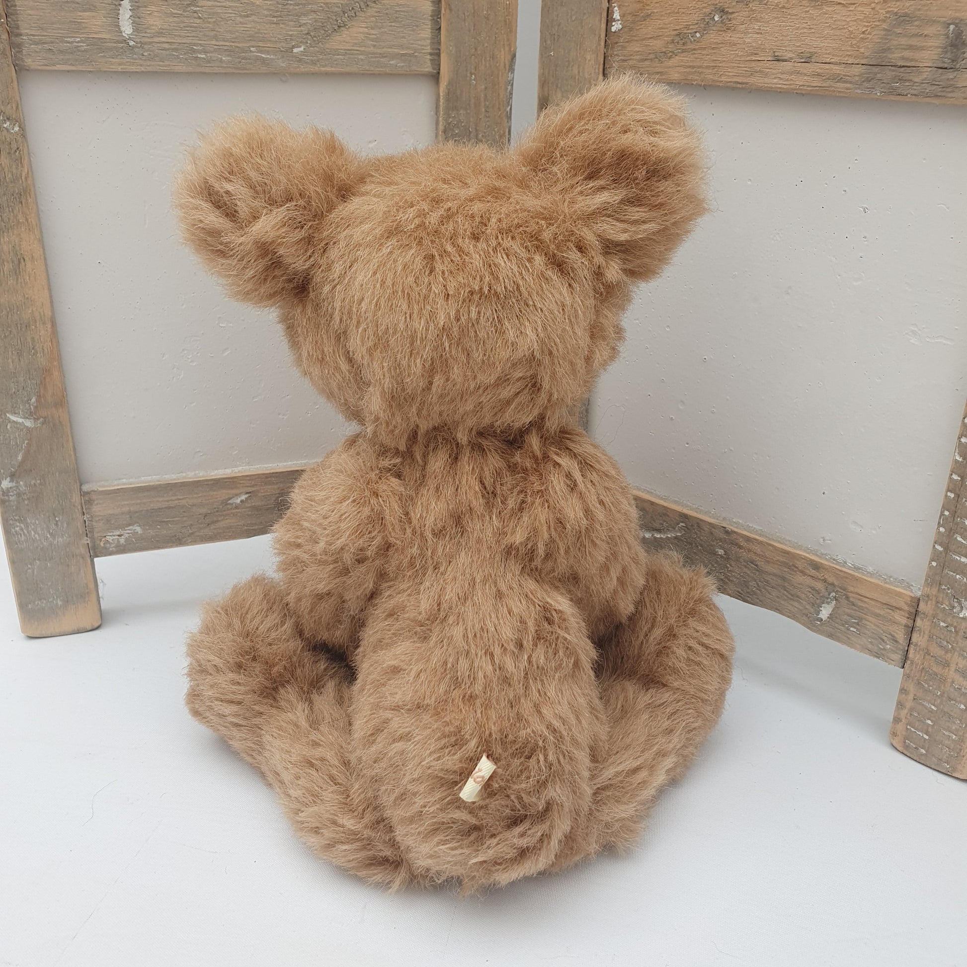 Made from my own original pattern, Muffin is fully handmade and has been designed to be a sitting bear, however with a little positioning and support she is able to stand in an upright position against/beside something.