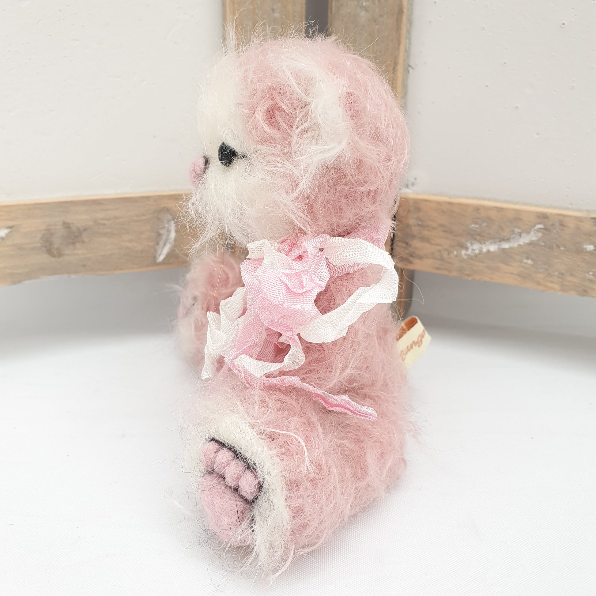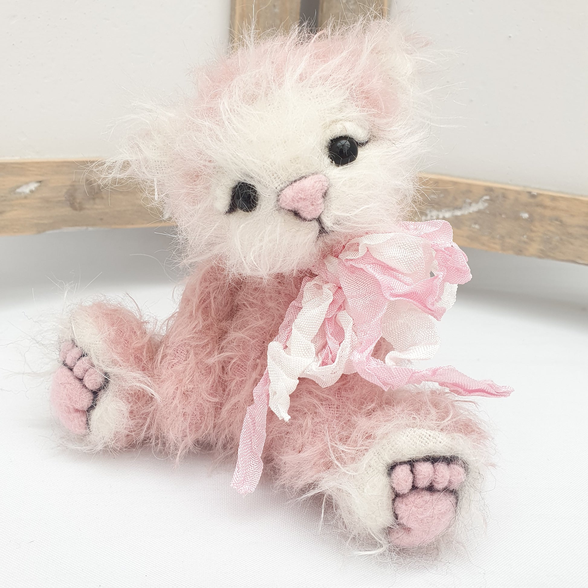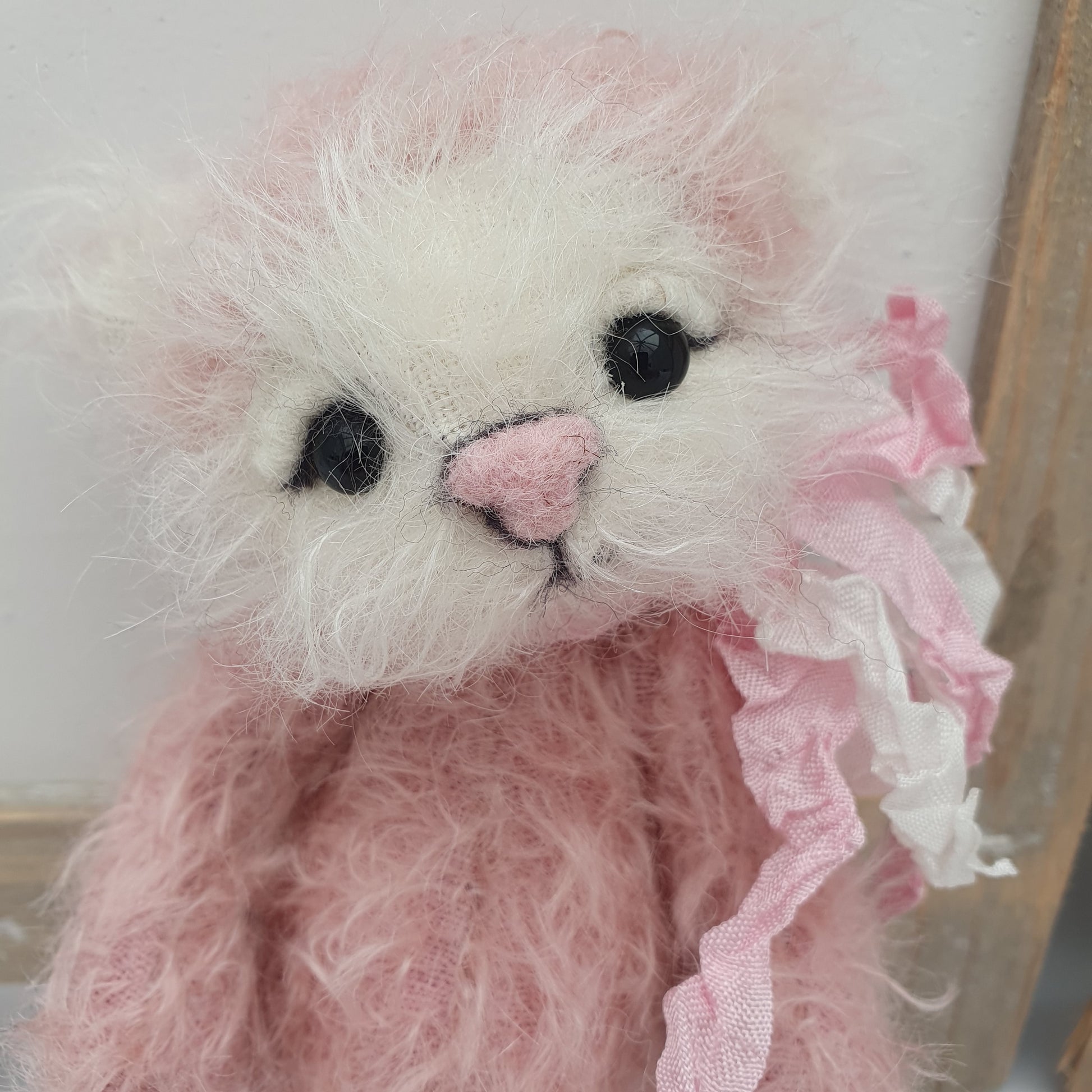 - Handsewn White & Pink Mohair