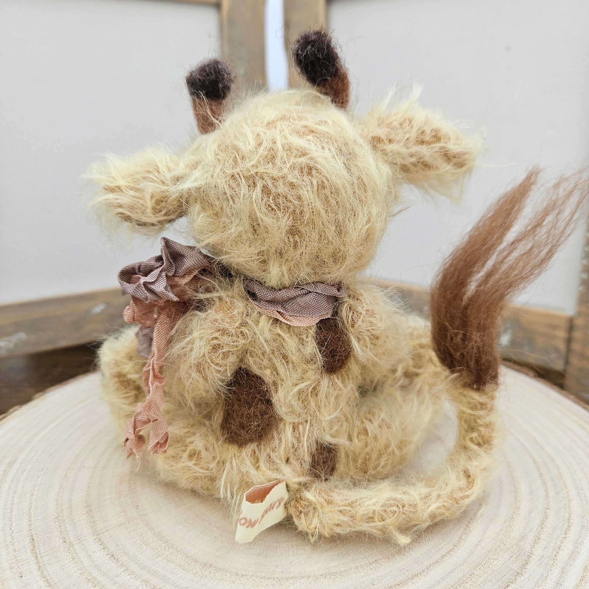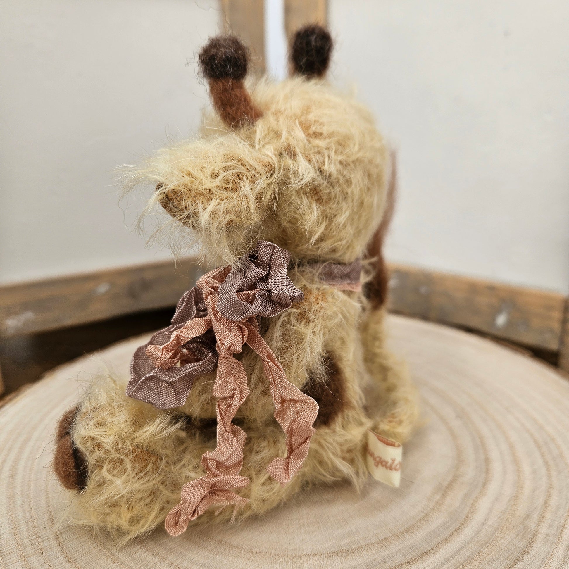 Raffy is decorated with Silk Ribbons and has a wired tail.
