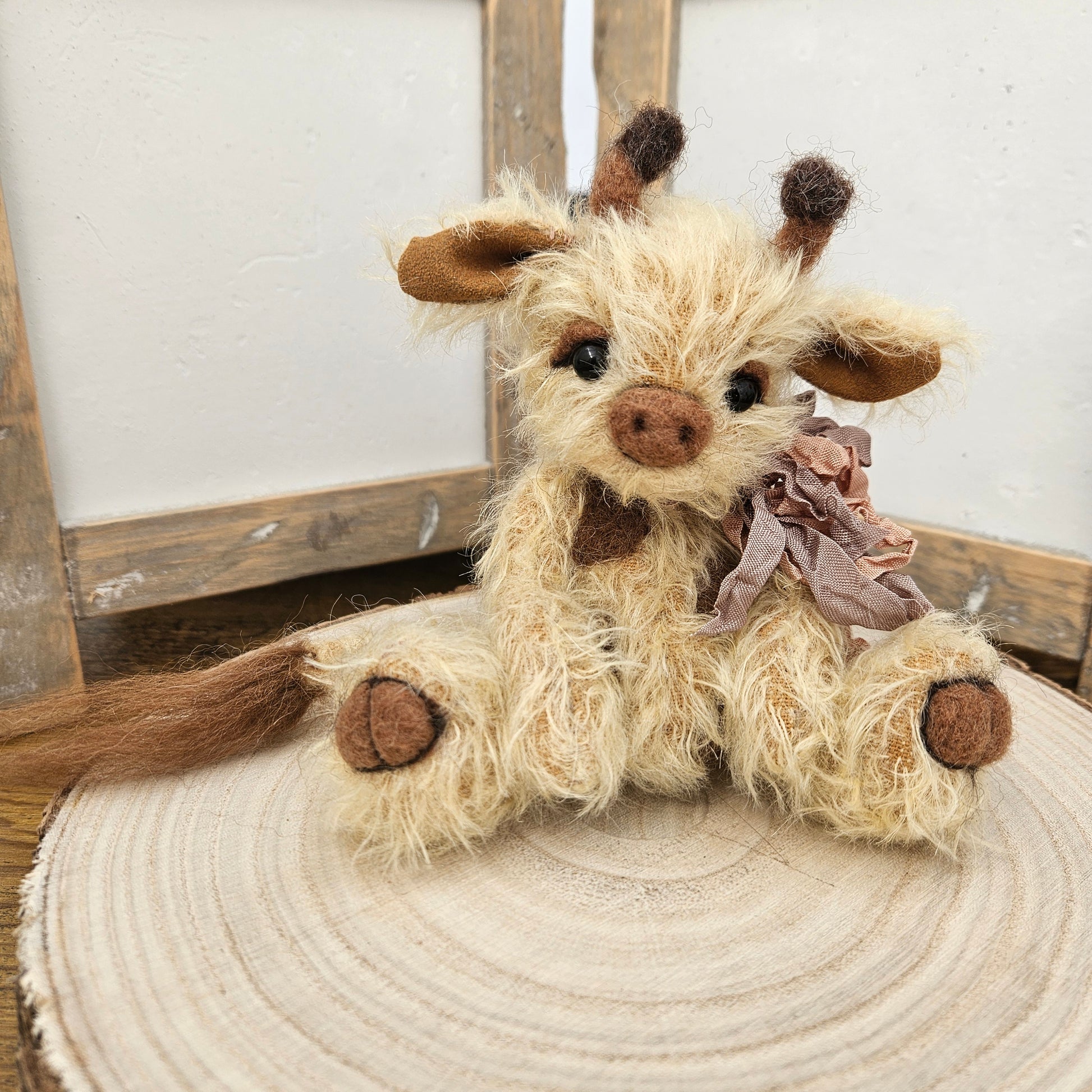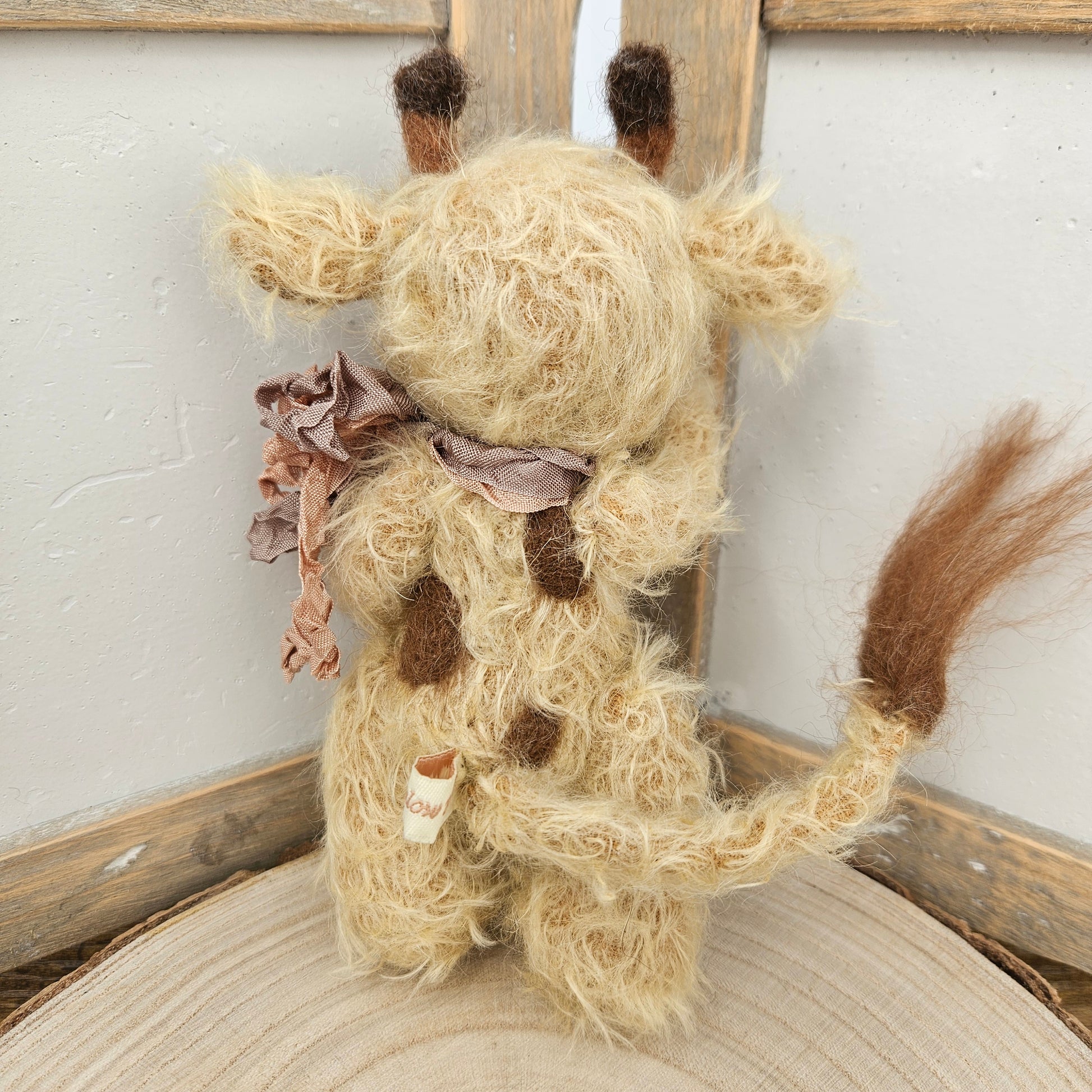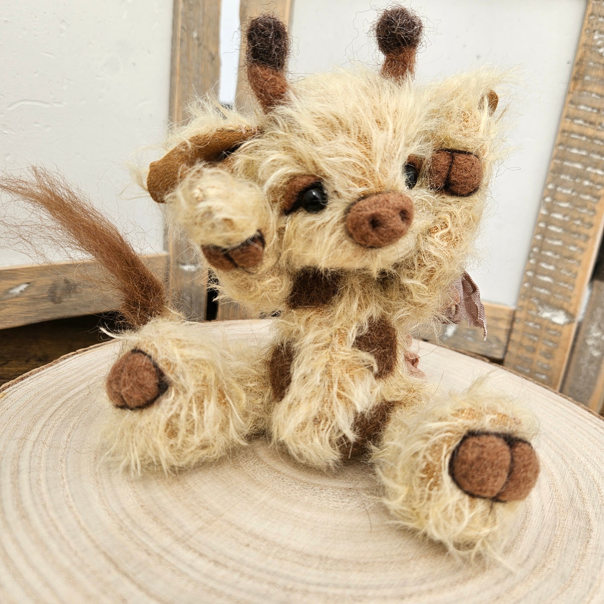 - Brown merino needle-felted details